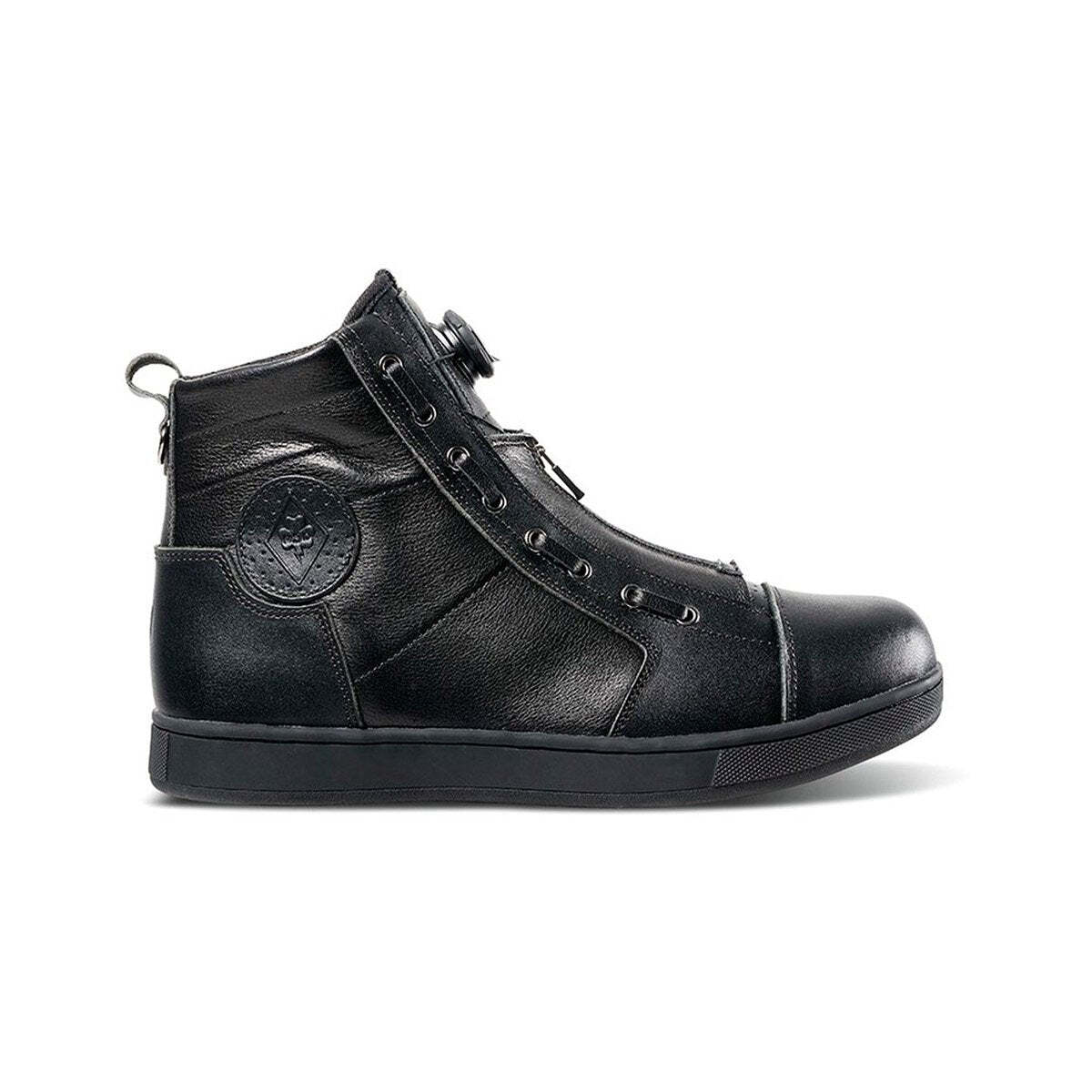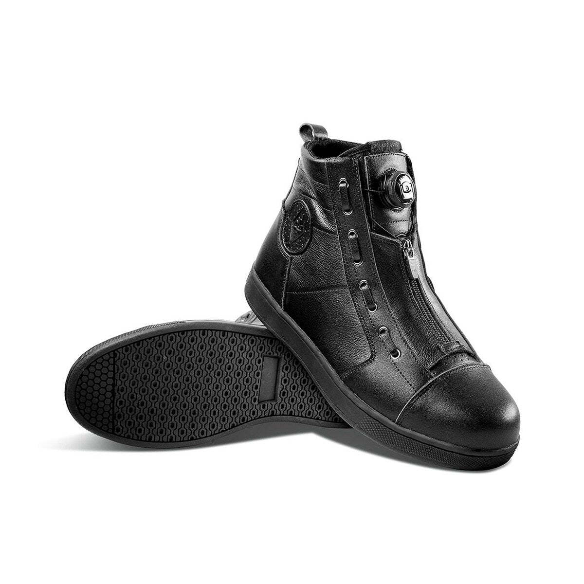 Для идеальной подгонки ботинка по ноге специалисты RSD разработали уникальную систему MOZ - диск на вершине язычка, позволяющий регулировать натяжение застежки. В отличие от традиционных систем удержания обуви на стопе, система MOZ полностью исключает риски, связанные с застреванием шнурков в цепи или контактом с подножками мотоцикла.