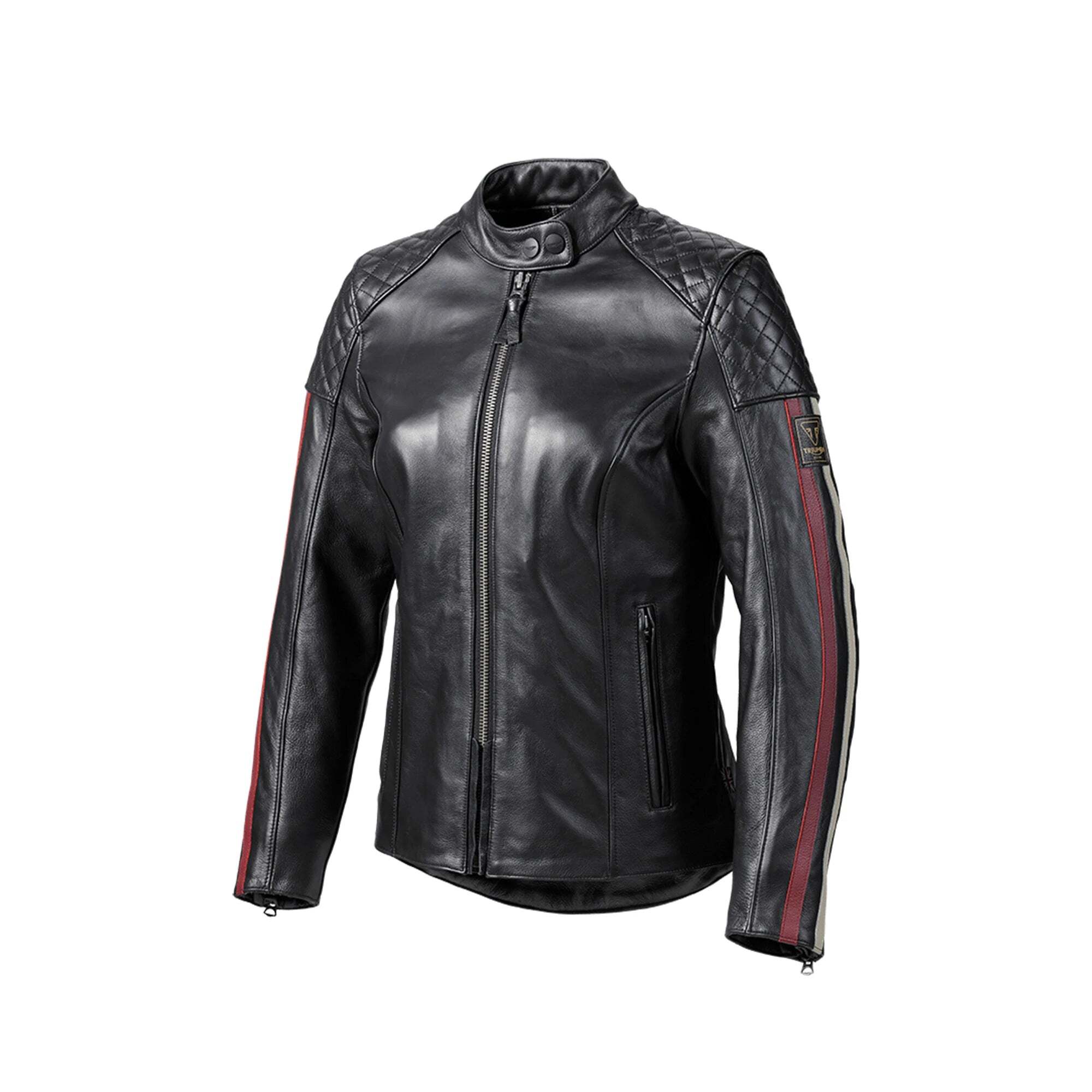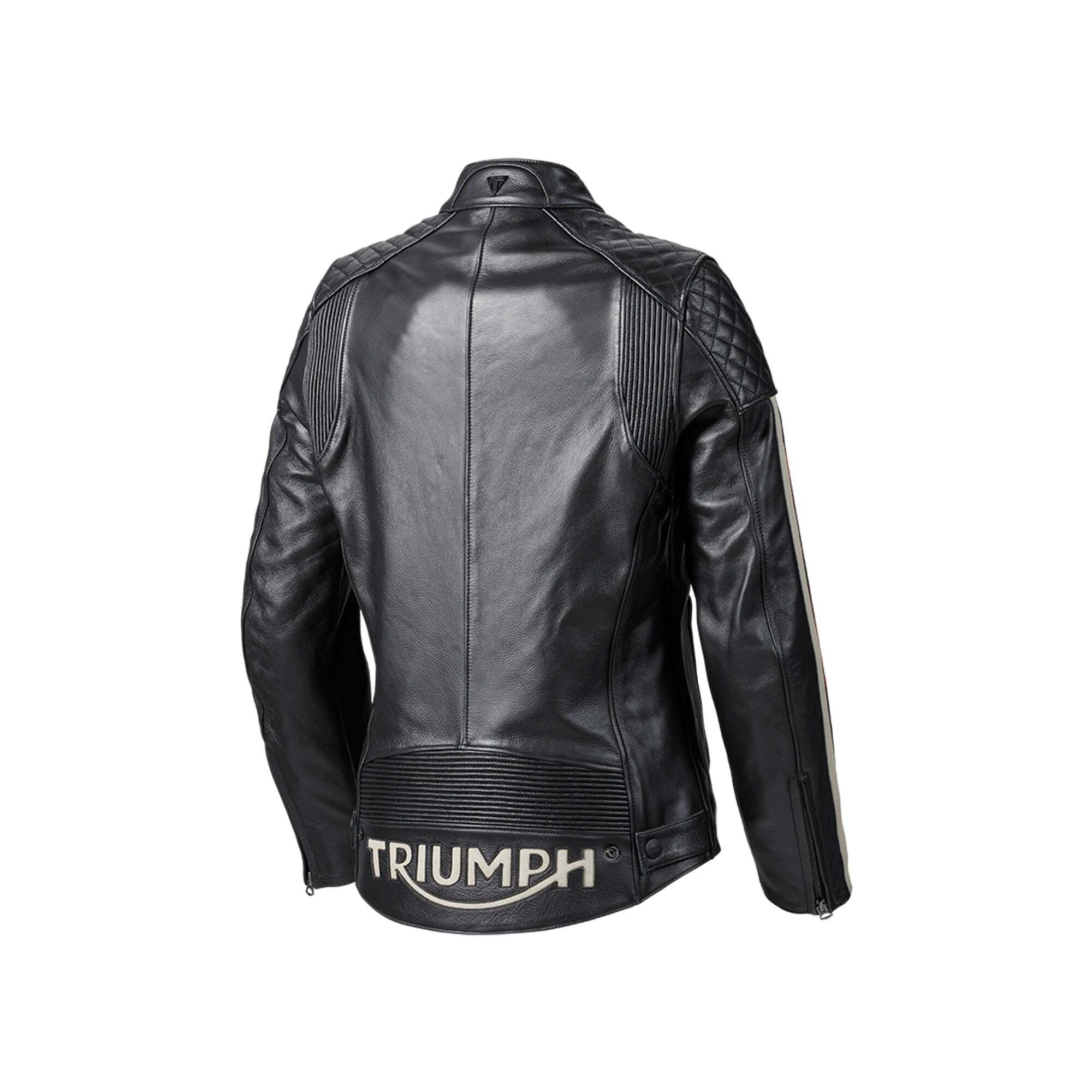 Неповторимый образ куртки Braddan буквально соткан из множества стильных деталей: крупные стёганые элементы на плечах, воротник-стойка на кнопках, тиснёная надпись Triumph на пояснице, ярко-алая подкладка с карманом на молнии и едва заметный британский флаг на правом боку.